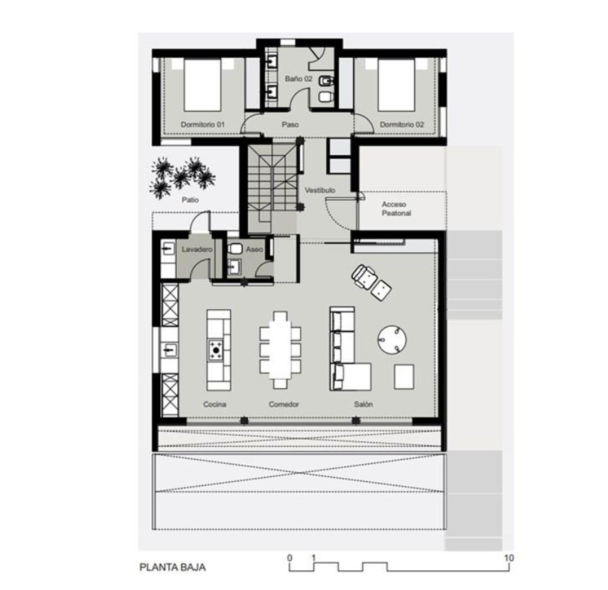 Construido con materiales de primera calidad, incluye un sistema de domótica, paneles fotovoltaicos, calefacción por suelo radiante, aerotermia y electrodomésticos de última generación.Distribuida en 3 niveles, la planta superior de 42.70m2 recoge un exquisito y amplio dormitorio principal con baño en suite y vestidor que da a una terraza con vistas panorámicas al mar.
